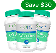 By maintaining good gut health, you are supporting healthy immune functin. Plus, the bacteria and other microbes in your gut help you digest food and have been shown to support heart and brain health. GO-3 Plus combines clinically researched pre-, pro-, and post-biotic ingredients, along with the antioxidant SolarPlast®, into one supplement. Combining ‘biotics’ together with SolarPlast is new to the industry, making GOLO a pioneer with this type of gut combination product.