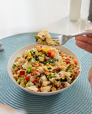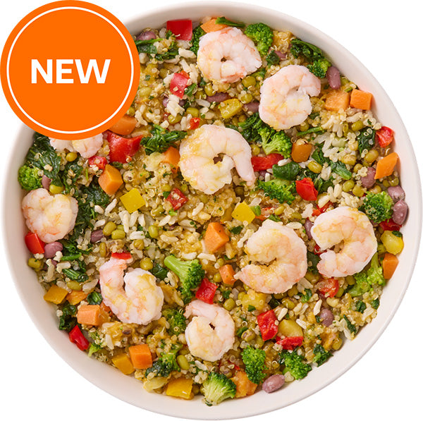 Wild-caught Gulf shrimp blended with brown rice, quinoa, vegetables, beans, and seasonings.