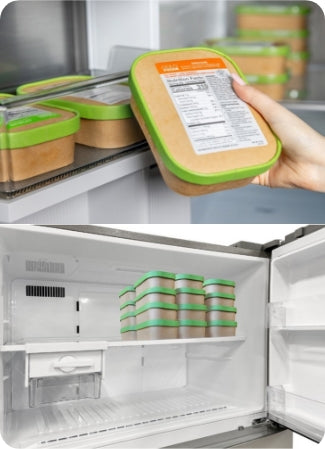 Our meals are compact but loaded with flavor and nutrition. Short on freezer space? No worries — 24 of our 10-oz Superfuel meals take up less than 16% of an average freezer. Freeze most, keep a few in the fridge for quick, convenient access anytime.