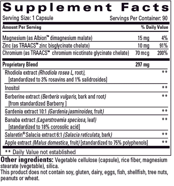 Provides support for healthy glucose metabolism and maintaining normal blood sugar levels